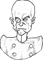 Something has won your attention straight away : at the back of the room, with his back turned on you, on a Chancellor's armchair, Ashtaroth empties an open signature book of its leaves; he scribbles them and puts them on the other side, building up slowly an impeccable pile. You can not see more of him than the top of his smooth skull and his hands that appear in turn, each one on its own side, the one to take a leaf, the other to add it to the pile. And in between, you can hear the nib grating on the leaf. This recurring move is apparently meant to last longer than you could ever stand it. Not that you do not appreciate the serenity of this clock-like mechanism. But the cadaver stench is really unbearable ! And you know it comes from him. |